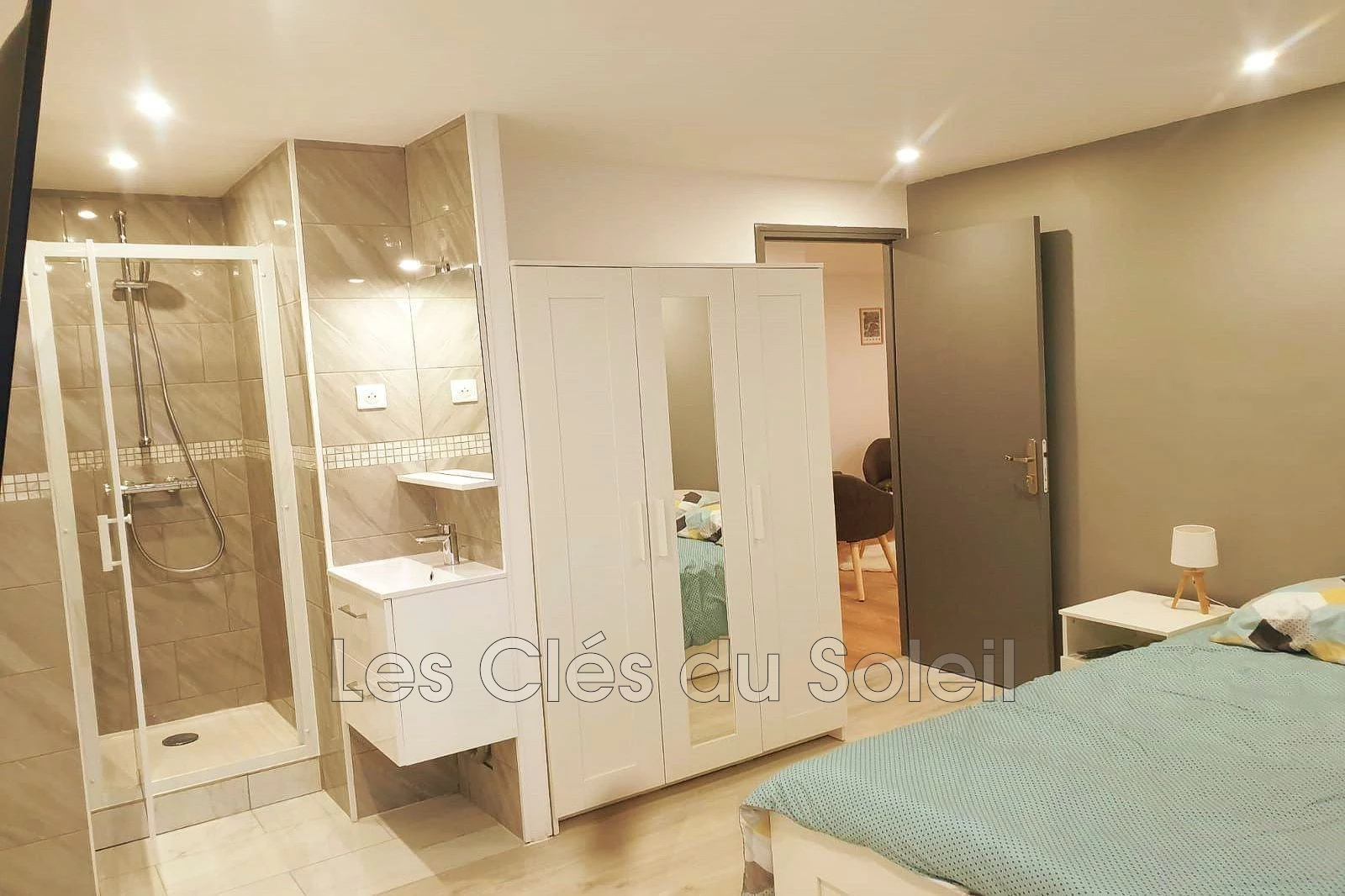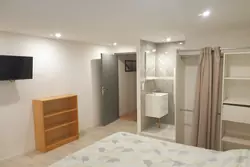 Il se compose de la sorte : Dégagement, cuisine ouverte équipée et aménagée donnant sur salle à manger, dégagements desservant 4 chambres allant de 14 à17 m². Deux (17m² chacune) donnant sur terrasse indépendante, salle de bains et deux (14 et 17m²) avec salle d'eau, toilettes indépendantes.